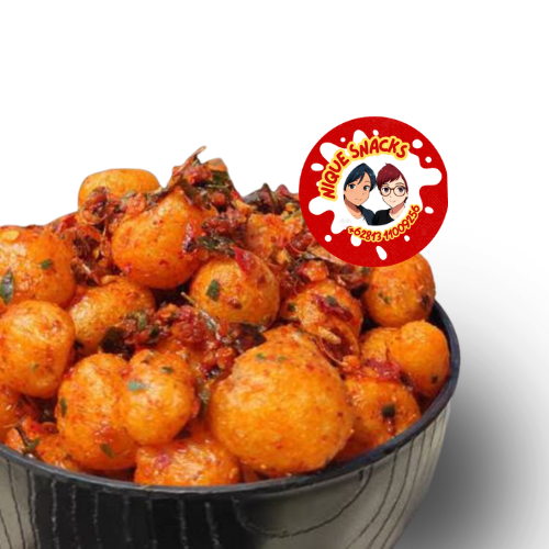 A Bandung street-snack legend, Cimol short for aci digemol is made from tapioca flour, hand-rolled into bite-sized balls, then deep-fried until puffed and golden. This spicy version is tossed in a bold blend of chili powder, garlic, and savory seasoning, delivering a chewy crunch with a fiery finish.